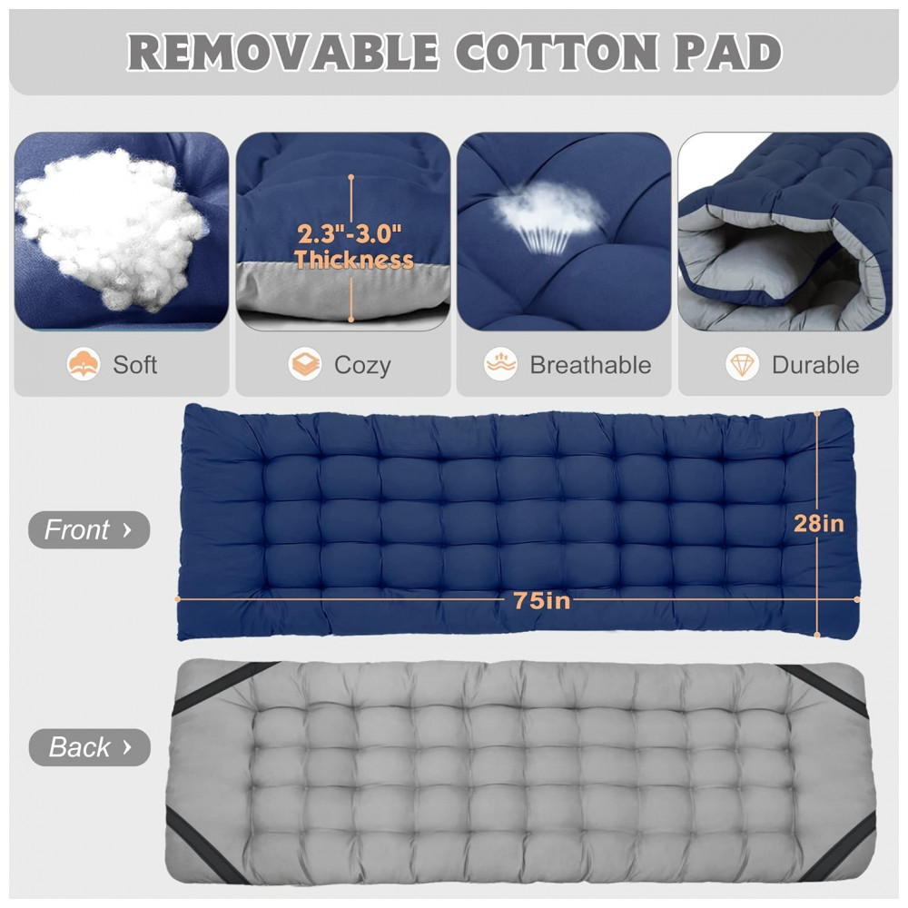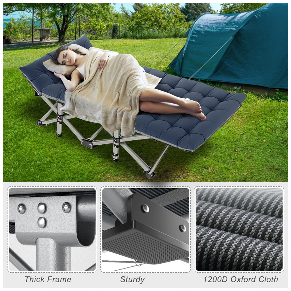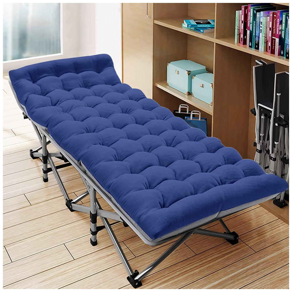 Cama Dobrável Portátil para Acampamento com Acolchoado 2 Unidades Suporta 408 kg ABORON Azul Marinho