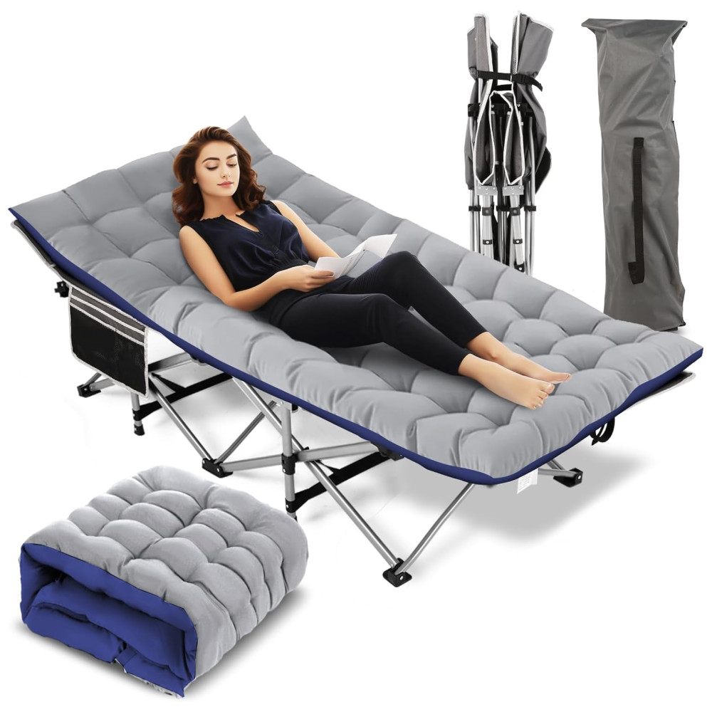 Cama Dobrável Portátil para Acampamento com Camada Dupla Acolchoado e Bolsa de Transporte Suporta 408 kg Nictemaw Cinza