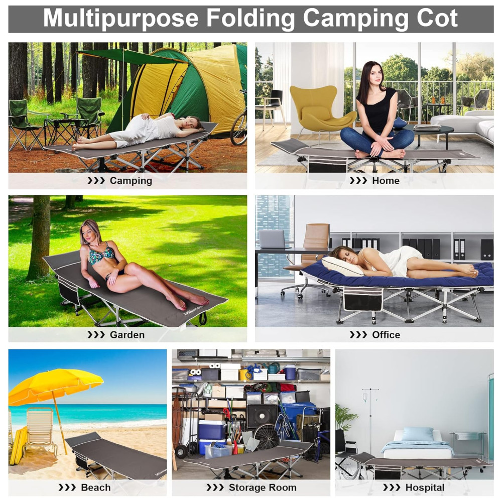 A cama de acampamento para adultos com colchão é perfeita para uso interno e externo, perfeita para uso no escritório, casa, piscina, lago, trailer, acampamento, deck, barraca ou como presente para amigos e familiares. É também uma cama temporária perfeita quando convidados chegam à sua casa