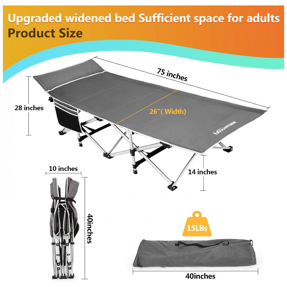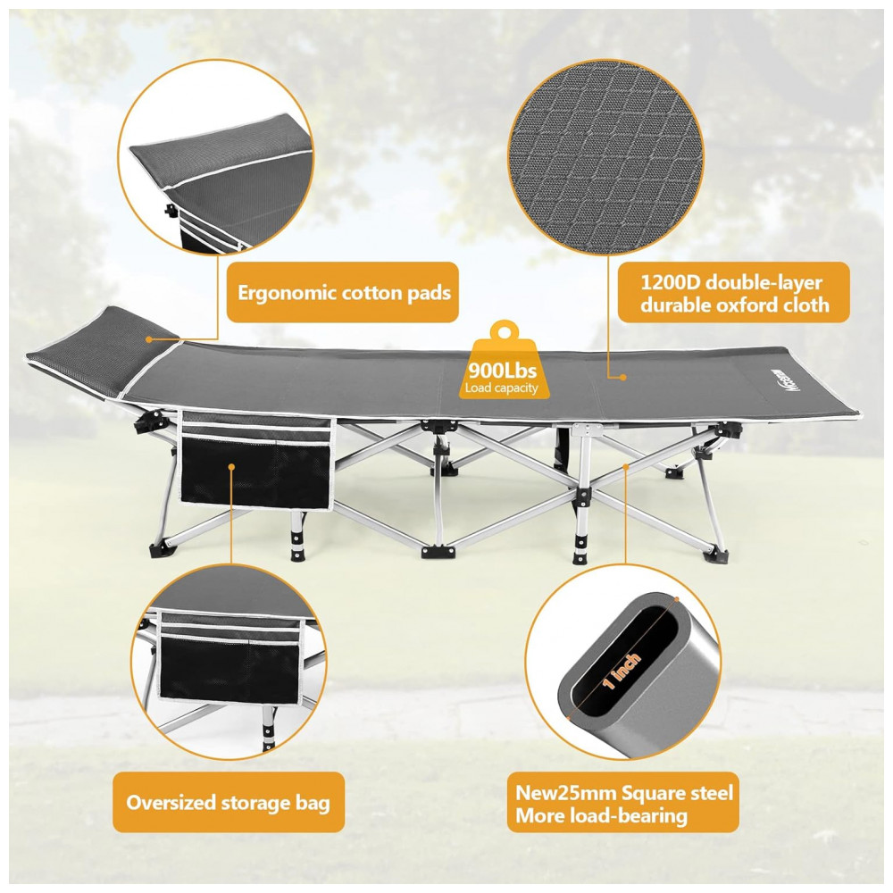 Robusto e durável O tubo quadrado mais recente e mais grosso é nas pernas da cama para aumentar a estabilidade e a capacidade de carga da cama de acampamento. Perfeito para adultos altos, pessoas pesadas ou crianças da família, adolescentes, bebês e crianças.
