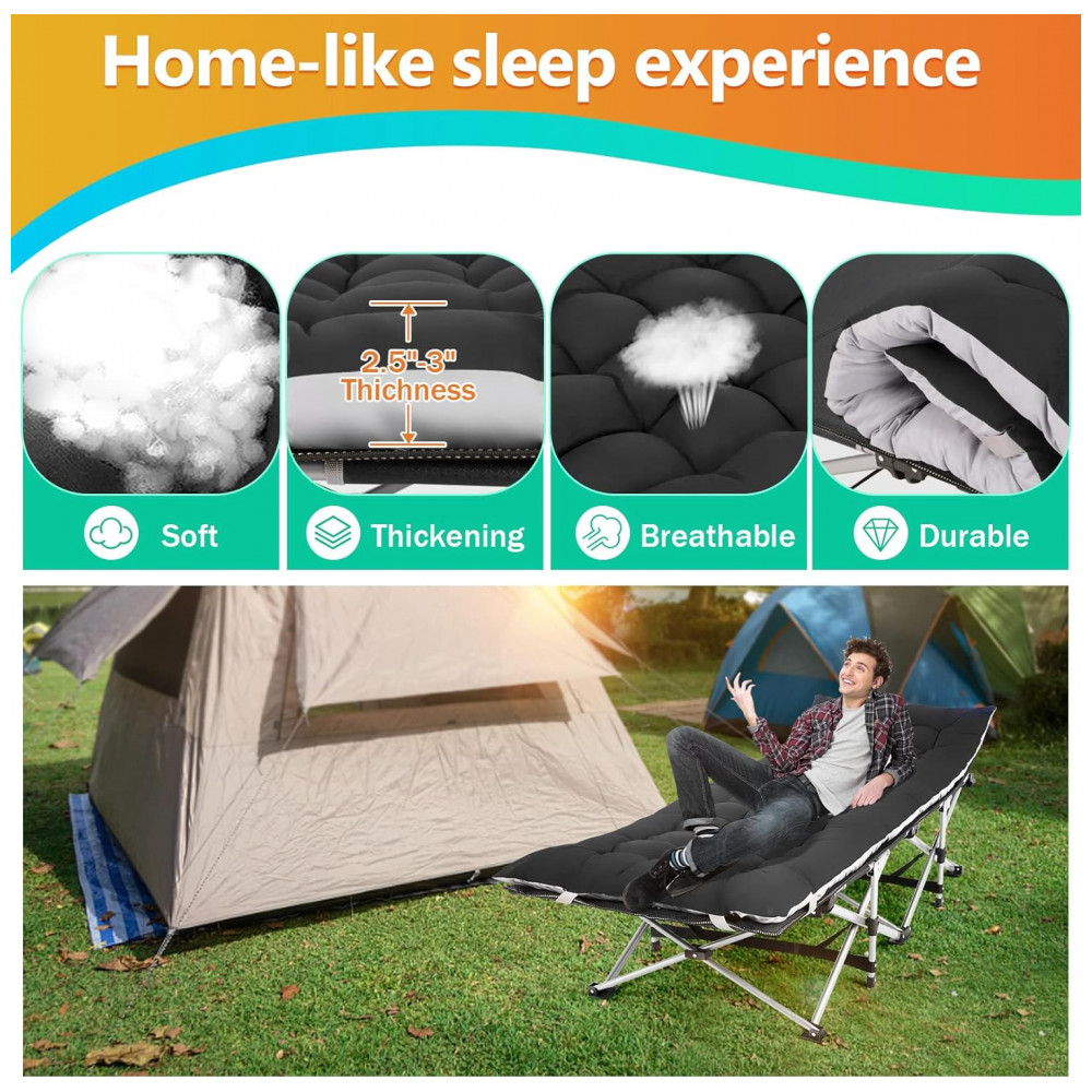Colchão confortável O colchão da cama de camping é feito de algodão macio pérola e é muito confortável. O elástico nos quatro cantos garante que a almofada se adapte bem.