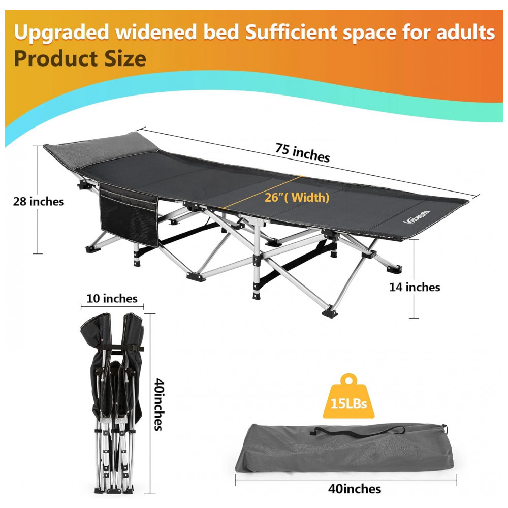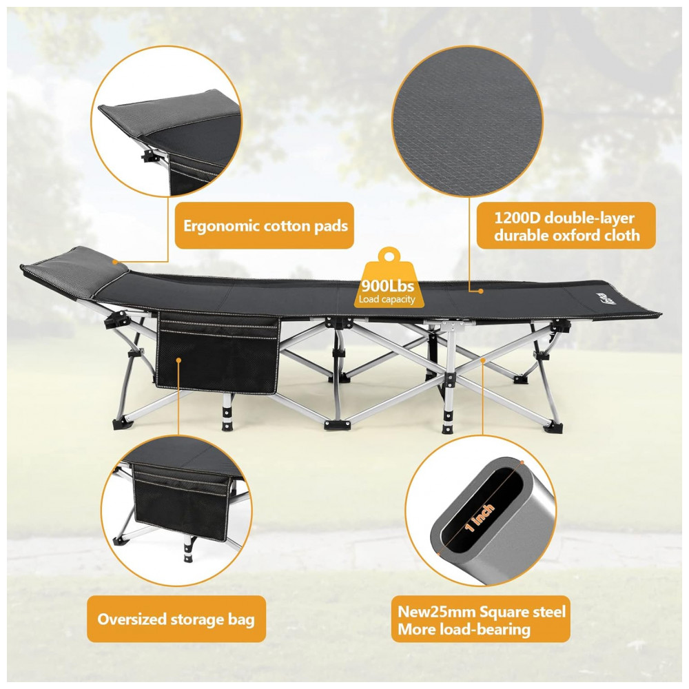 Robusto e durável O tubo quadrado mais recente e mais grosso é nas pernas da cama para aumentar a estabilidade e a capacidade de carga da cama de acampamento. Perfeito para adultos altos, pessoas pesadas ou crianças da família, adolescentes, bebês e crianças.