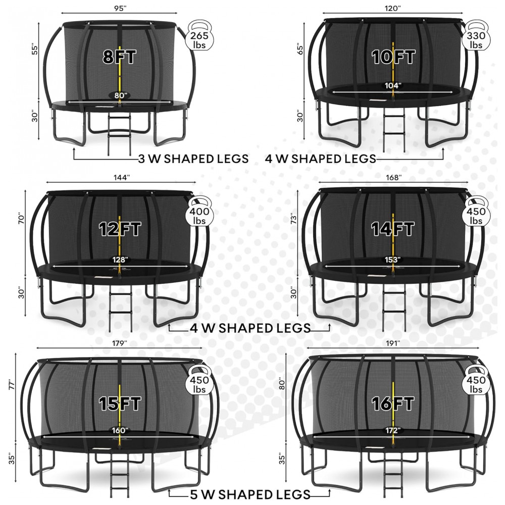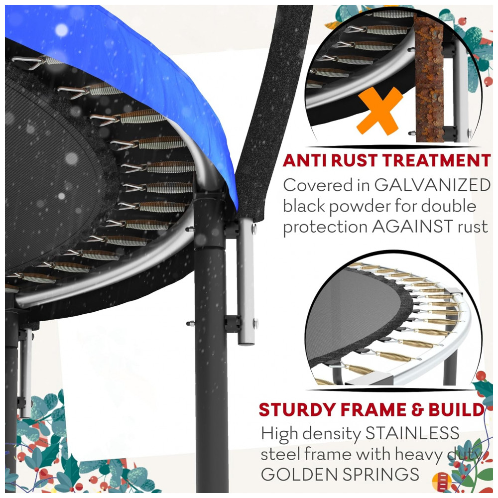 Tudo em uma caixa para a entrega mais rápida A maioria dos trampolins de 4,2 metros vem em dois pacotes separados, o que significa duas datas de entrega que às vezes podem levar dias de diferença. Sabemos como é emocionante comprar um trampolim infantil com rede, por isso garantimos que você receba seu produto o mais rápido possível e todas as peças em UM único pacote, você pode começar a instalar assim que for entregue. Isso resolve a longa espera entre os pacotes com os quais você precisa lidar para outros produtos semelhantes.