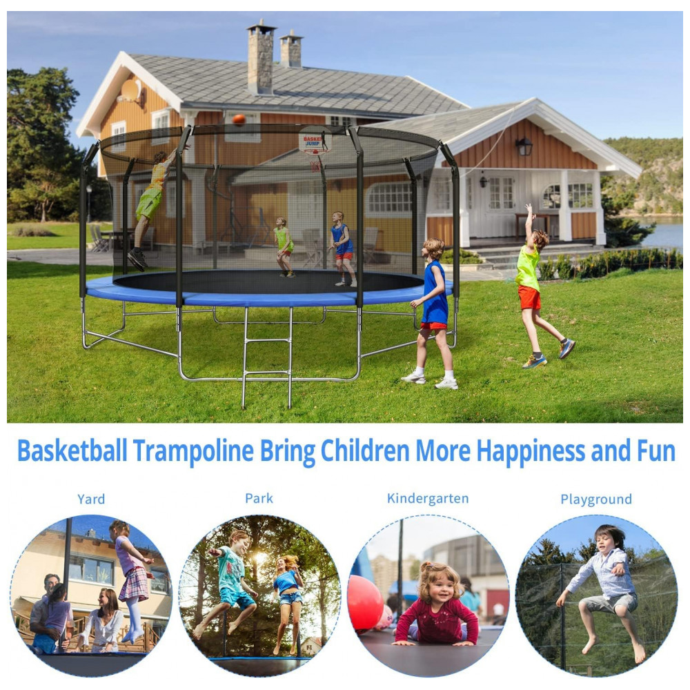 Cesta e Escada de Basquetebol O trampolim com uma cesta de basquete flexível facilita o salto e o arremesso e duplica o prazer. A escada anexada é conveniente para as crianças subirem e descerem. Mais interessante e mais conveniente. Deixe seus filhos ficarem longe de jogos de computador e TV e abrace a amizade e a felicidade.