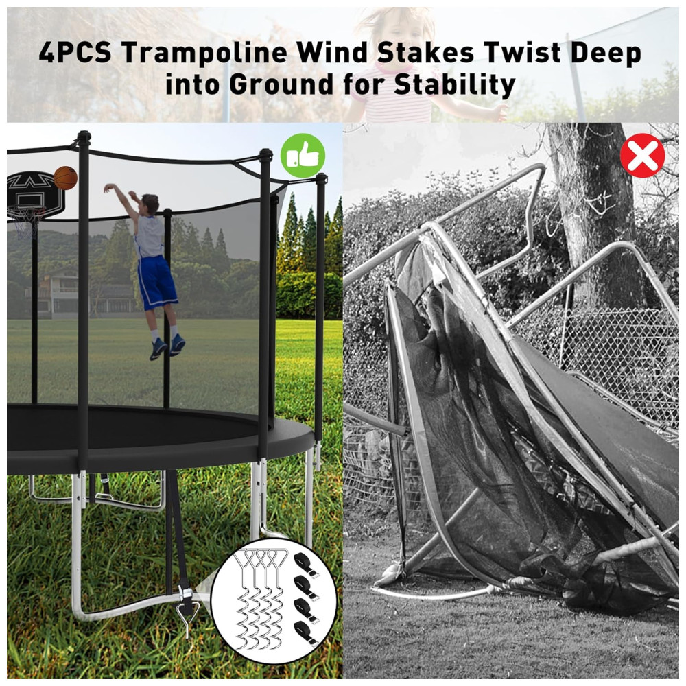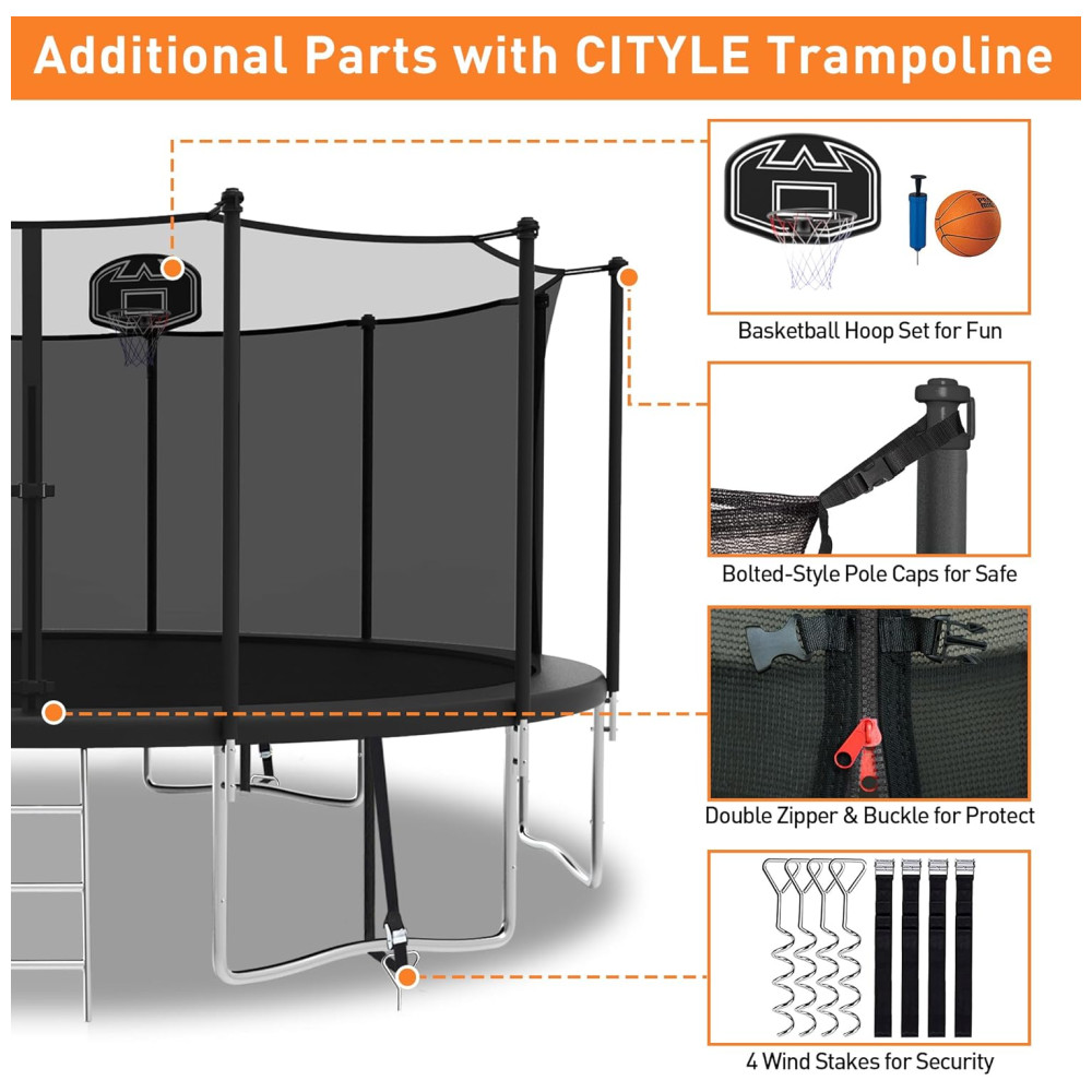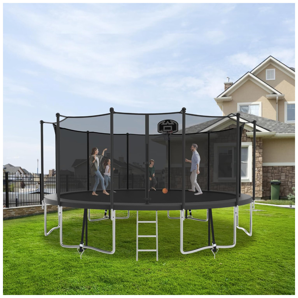 Trampolim redondo 16 pés CITYLE preto com rede de proteção cesta de basquete escada estacas e capacidade até 680kg