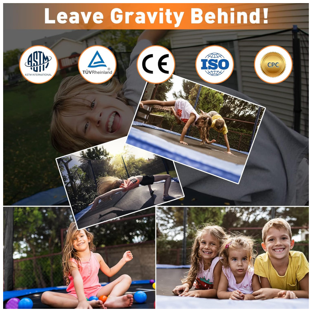 O trampolim CITYLE 16 pés foi projetado para uso recreativo familiar em áreas externas, combinando estrutura metálica de alto desempenho com componentes de segurança integrados. A armação circular em aço liga galvanizado trabalha em conjunto com 6 pés em formato de W para aumentar a estabilidade durante o uso.