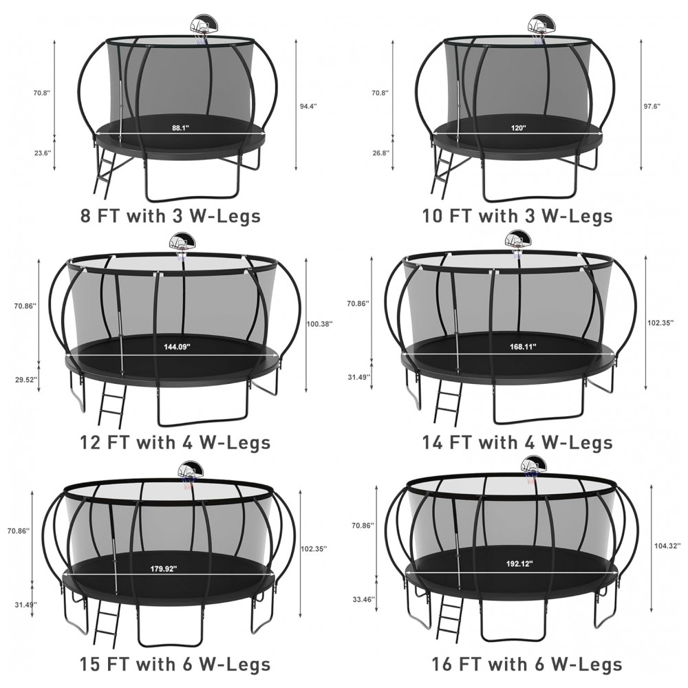 Capacidade de peso de 680 kgEste trampolim resistente de 2023 é feito de aço galvanizado de espessura pulverizada preta. O aço galvanizado tem a característica de durabilidade que faz com que não quebre por mais de 20 anos. Comparado com outros aços usuais, o aço galvanizado é mais estável, brilhante e mais confiável.