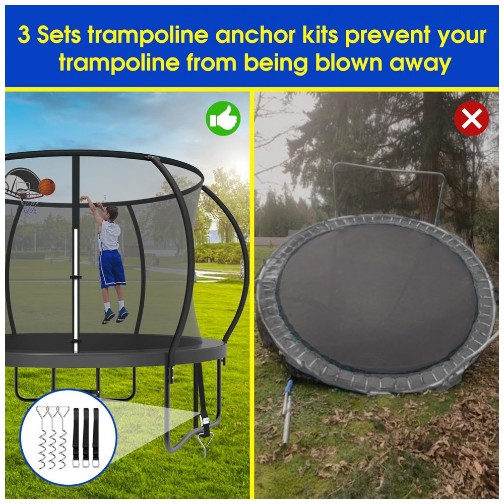 Proteção segura de 360 A segurança é sempre nosso primeiro objetivo perseguido. E temos tomado mais medidas sobre isso agora ou no futuro. Cada trampolim tem 12 mangas pólo. Os postes do gabinete são acolchoados com espuma de , que pode proteger seus filhos de bater contra o poste de aço.
