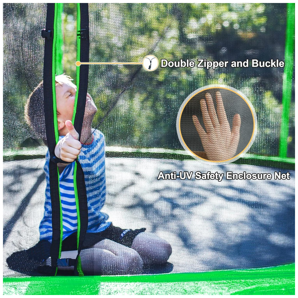 Proteção Múltipla para Crianças Jump Into Fun Trampolim de 4 M para adultos 700 kg equipado com rede de proteção de 360 graus firmemente presa ao tapete de salto em toda a volta, sem deixar lacunas Trava dupla zíper e fivela na rede oferecem proteção dupla para as crianças A escada removível para as crianças entrarem e saírem facilmente meias elásticas antiderrapantes seriam uma preparação íntima Kit de âncora de amarração anexado perfeito para vento forte.