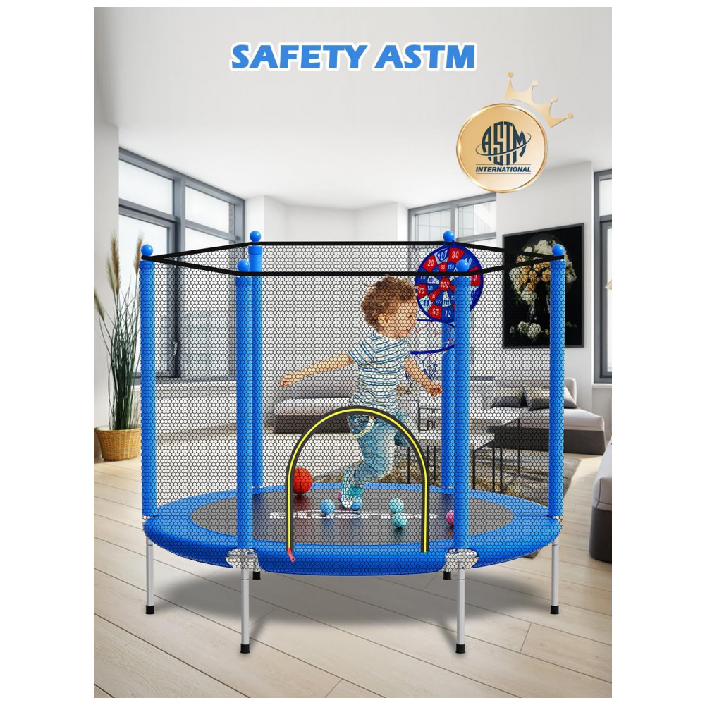 Aumentar a altura da barra de proteção A altura do trampolim é de aproximadamente 1,20 metros, o que aumenta a altura dos saltos das crianças, garantindo segurança e ampliando a área de atividades.
