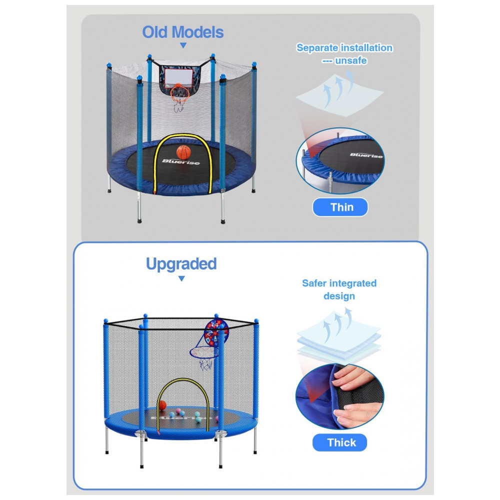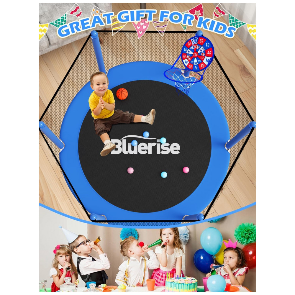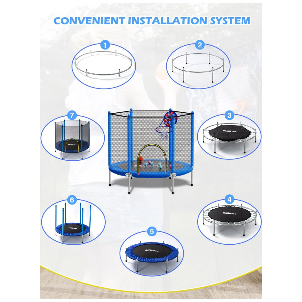 Garanta a segurança das crianças O trampolim de trompete Bluerise tem um certificado de inspeção de qualidade profissional TUV para proporcionar às crianças uma experiência segura no trampolim.