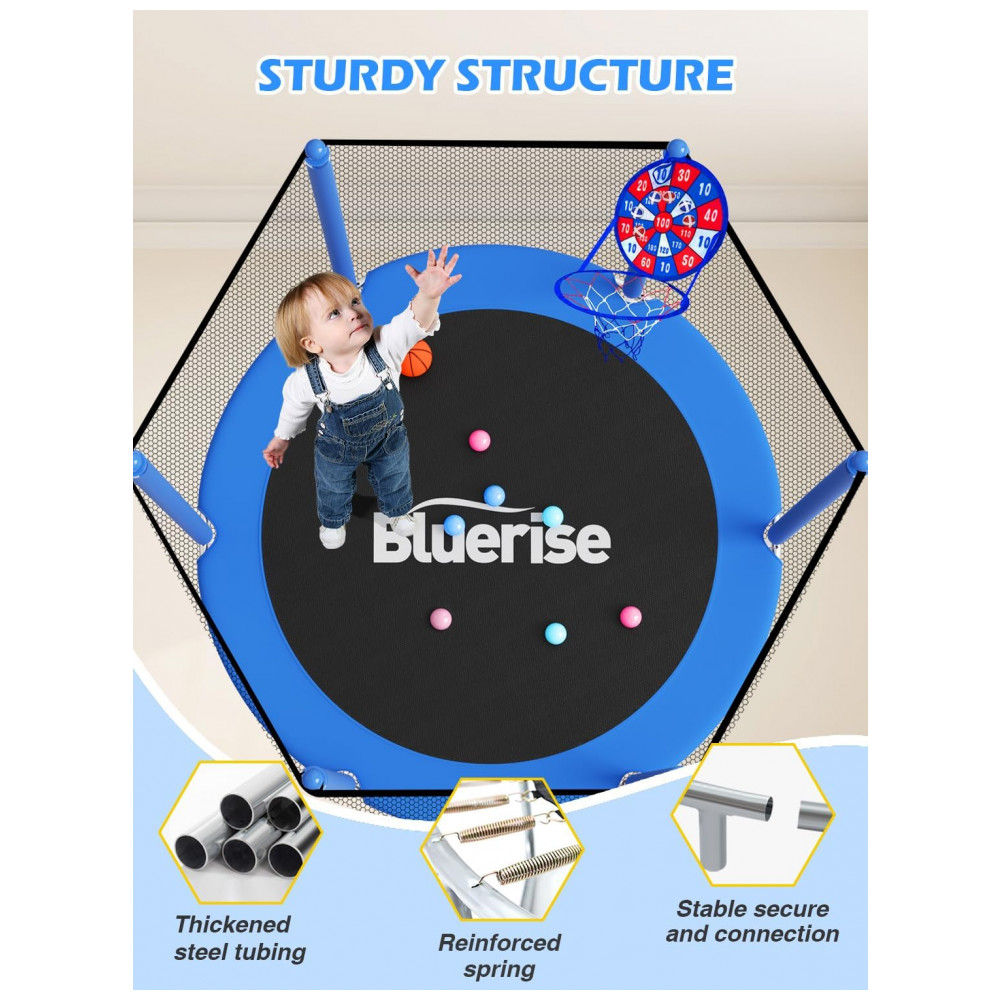 Cama Elástica com Cesta de Basquete até 49 kg Tamanho 140 Metros BLUERISE Azul
