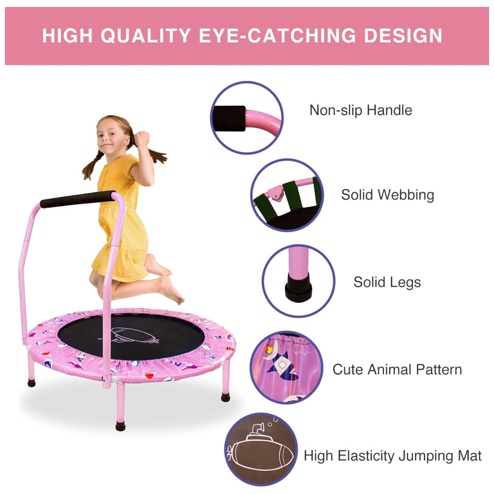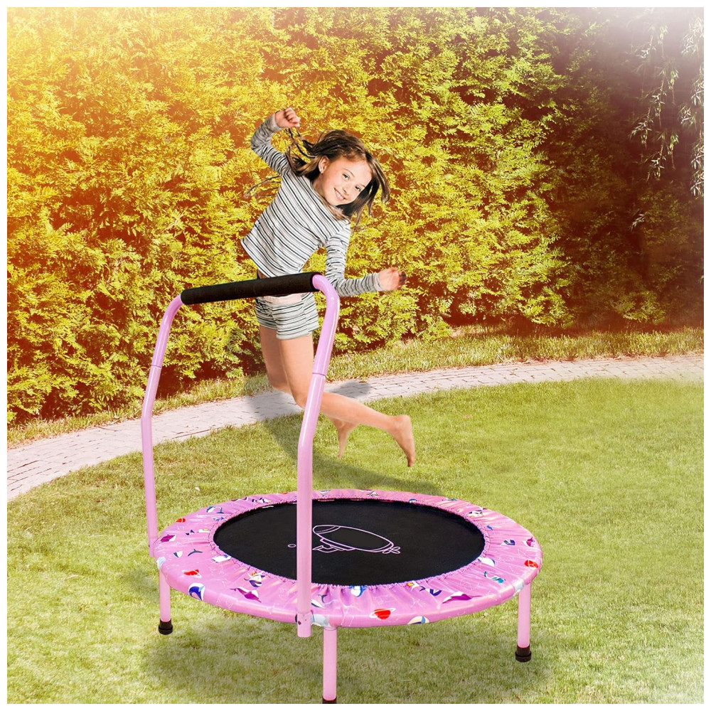 Cama Elástica Infantil com Alça e Capa Protetora para Crianças de 3 a 10 Anos Jomifin Rosa