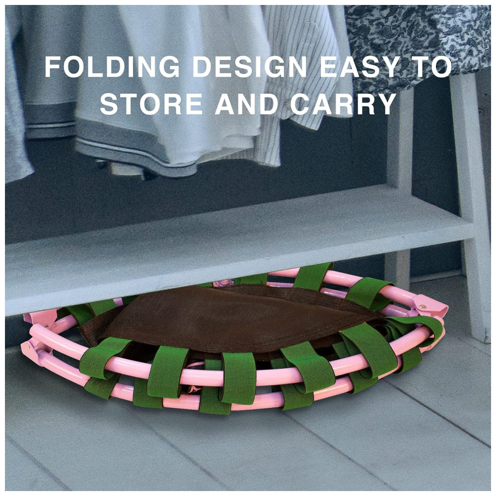 Este trampolim é fácil de montar, com todos os acessórios e instruções detalhadas necessárias para a montagem em apenas 10 minutos. A estrutura é feita de aço resistente e possui uma plataforma de alta flexibilidade, garantindo segurança e estabilidade durante o uso. Com uma carga máxima de 60KG, a maioria das crianças pode brincar nele. Além disso, este trampolim economiza espaço, dobrando se ao meio para armazenamento rápido e fácil.