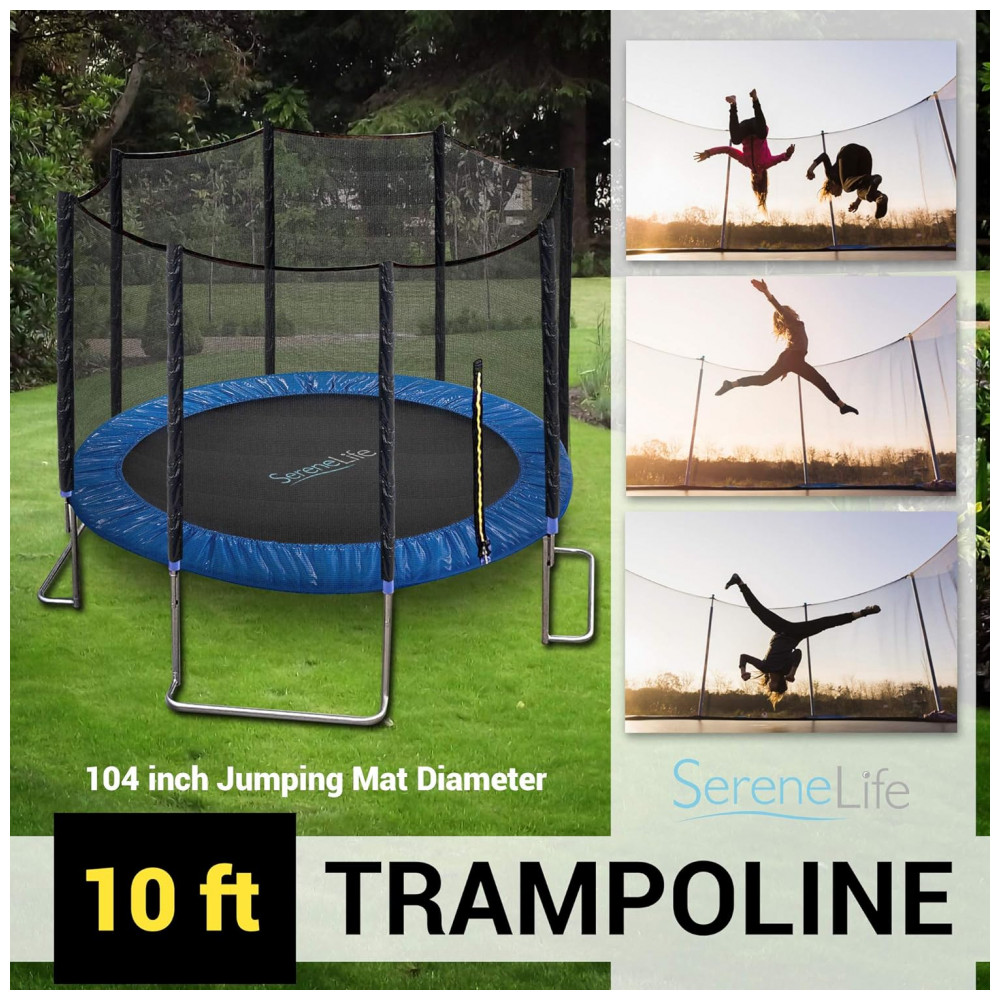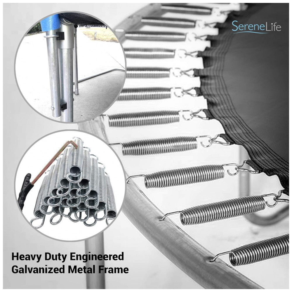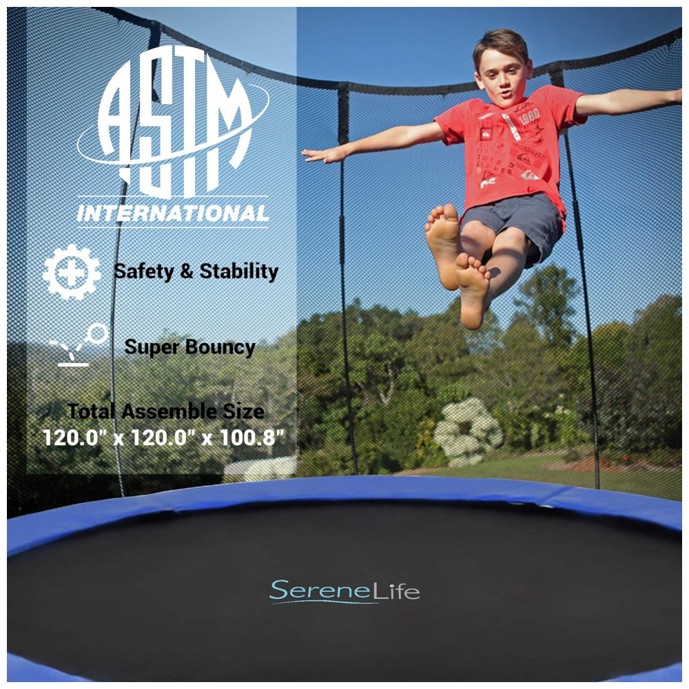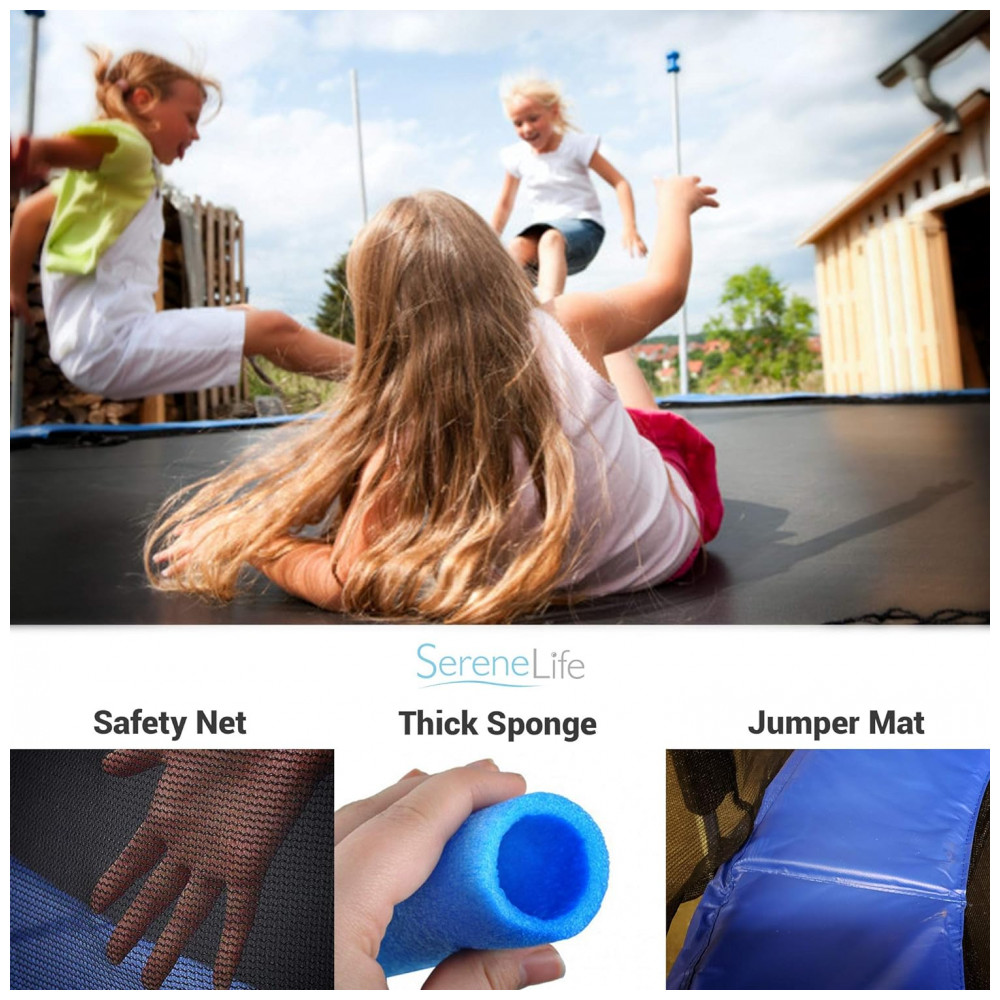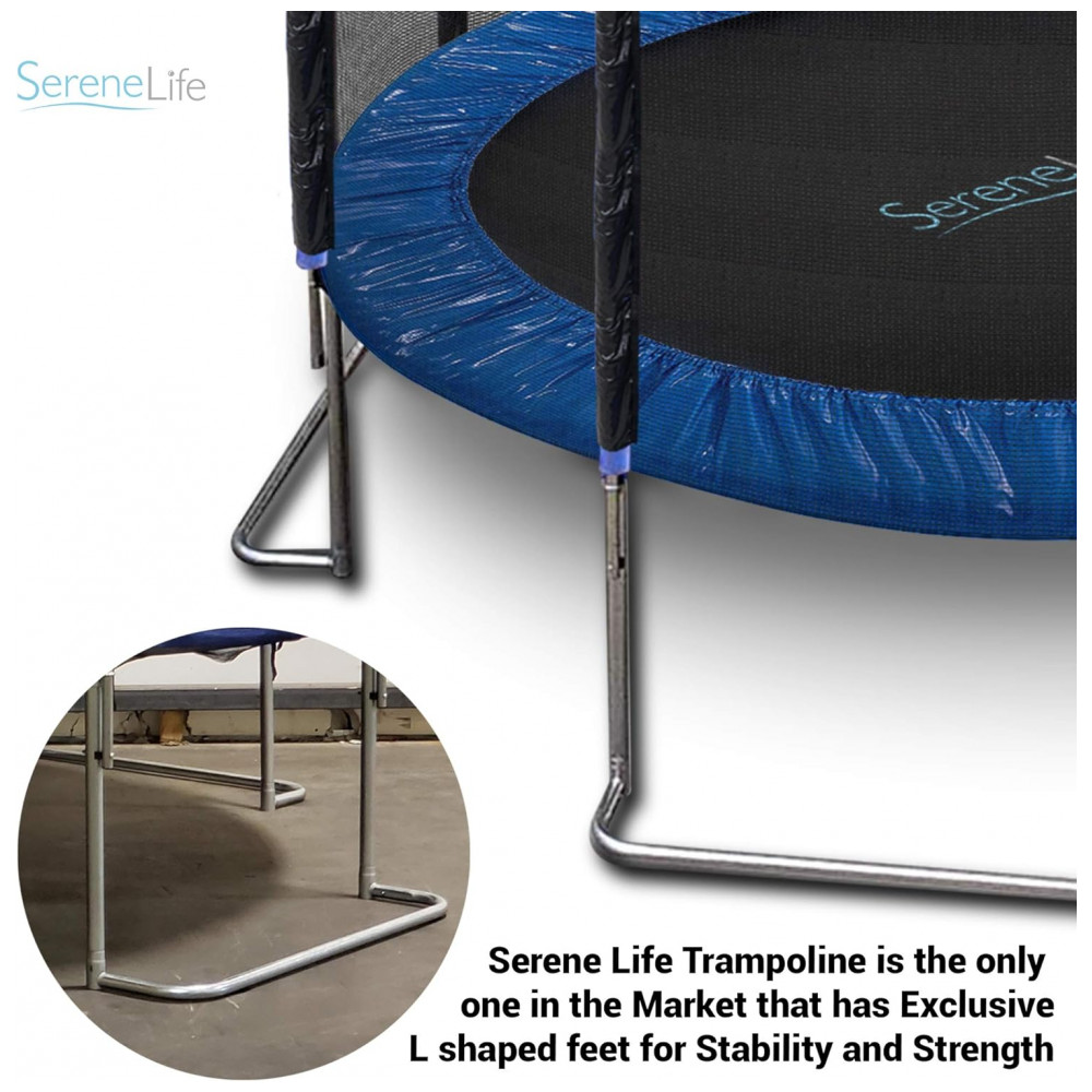 TRAMPOLIM DE 3,05 METROS COM GABINETE DE REDE Salte neste trampolim reforçado de 3,05 metros que proporcionará horas de diversão em família. Este trampolim forte e durável com rede de segurança é perfeito para crianças, adolescentes e adultos usarem. PÉS EM FORMA L PARA ESTABILIDADE EXTRA O trampolim infantil Serenelife é o único trampolim infantil do que possui o design avançado de pés em formato L que proporcionam estabilidade e resistência extras, ajudando seu trampolim a ser mais e durar mais. I