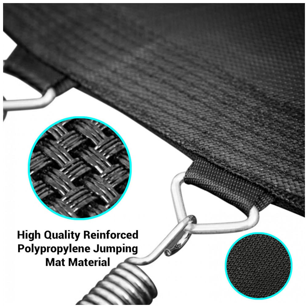 TRAMPOLIM DURÁVEL APROVADO ASTM Nosso trampolim foi testado e aprovado com os padrões ASTM, fabricado com material de salto reforçado e estrutura de metal de engenharia resistente, nosso trampolim foi projetado para suportar o uso prolongado em todos os climas