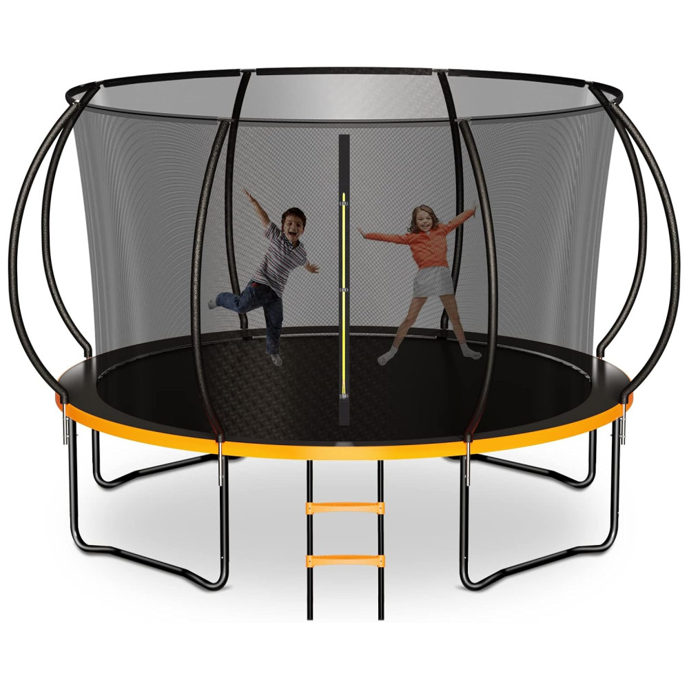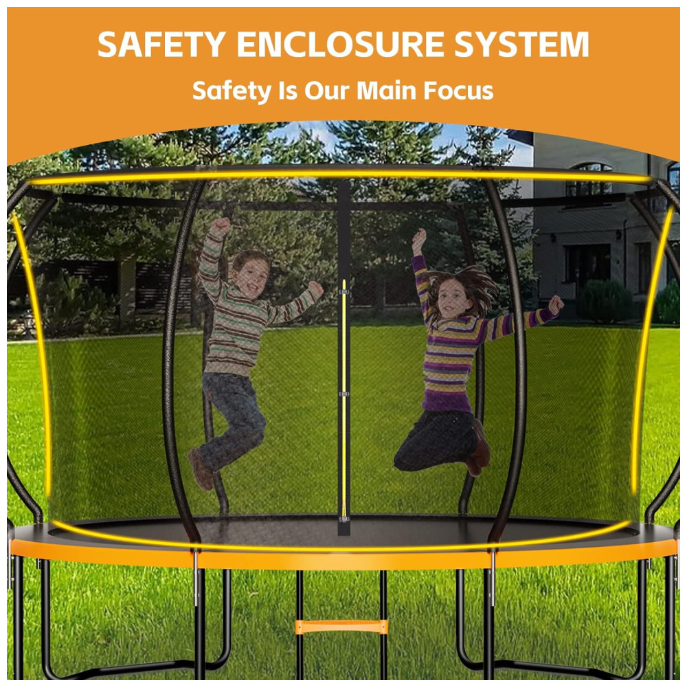 Postes curvos mais s Nosso trampolim de 14 pés 4,27 metros apresenta um gabinete curvo reforçado atualizado que oferece um espaço para as crianças brincarem sem risco de lesões.