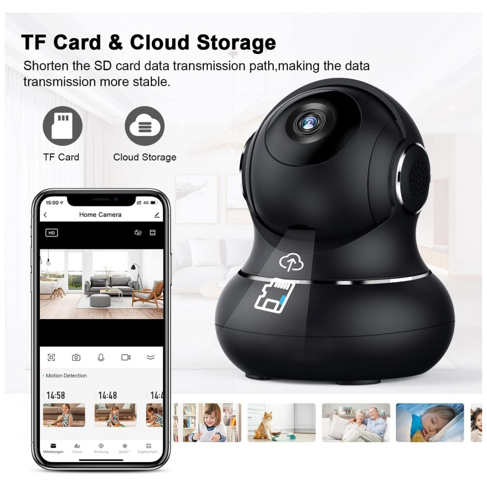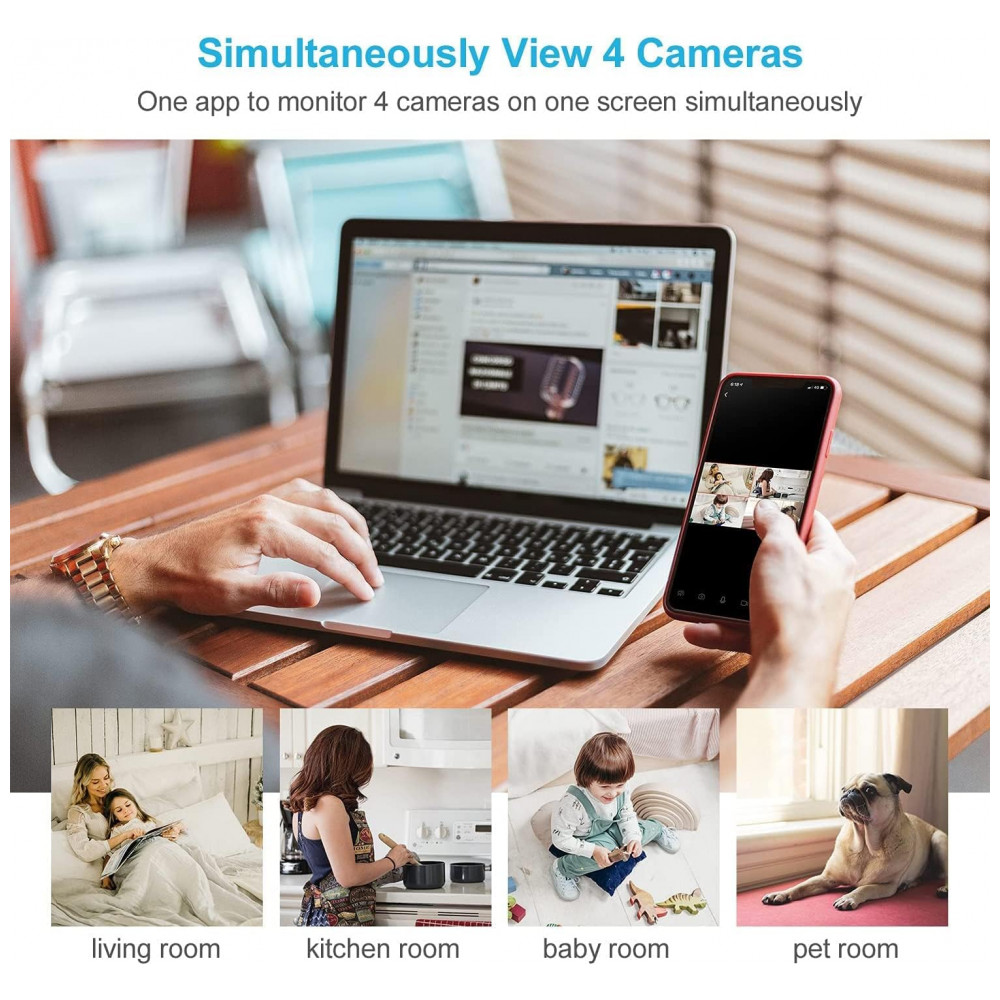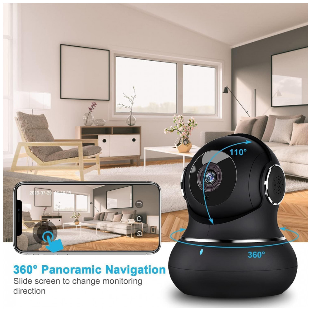 Câmera interna de panorâmica , inclinação inteligente Full HD e 1080P A câmera de segurança equipada com mega pixels 1920 1080 e lente óptica de alta tecnologia apresenta detalhes mais nítidos e produz qualidade de imagem nítida. Suporte cabo Ethernet confiável e conectividade Wi Fi de 2,4 GHz Não é compatível com 5GHz , a câmera de segurança interna fornece um ângulo de visão mais amplo com as funções horizontal 360 e vertical 110 para cobertura completa de sua casa, sem ponto cego.