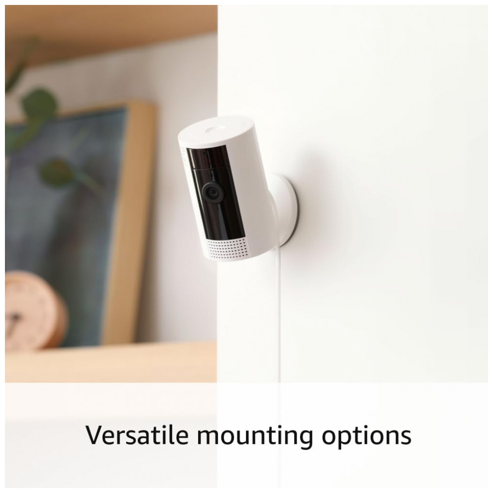 Opções de montagem versáteis Encontre o ângulo perfeito em uma mesa ou monte alto com o suporte giratório flexível. O Indoor Cam é um plug in, facilitando a movimentação para onde você precisa.