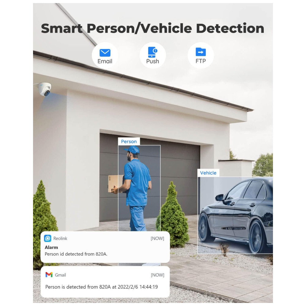 Gravação e proteção ininterrupta 24 horas por dia, 7 dias por semana quando adicionada ao sistema de vigilância por vídeo Reolink, a câmera IP de segurança D800 pode gravar não apenas clipes de movimento, mas cada minuto do que aconteceu em sua casa ou empresa. OBSERVAÇÃO que a câmera de segurança D800 PoE não pode funcionar de forma independente e funciona SOMENTE quando conectada ao sistema de vigilância Reolink 8MP ou NVR