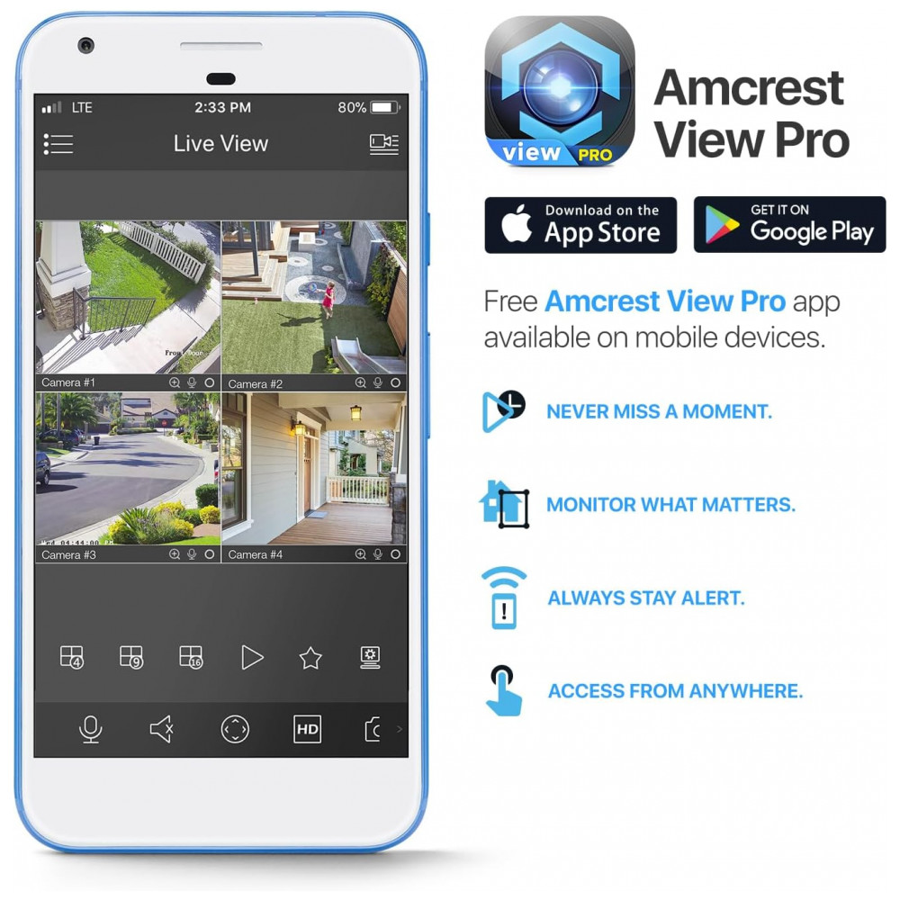 Encontre consolo na nuvem Amcrest Cloud foi criado para garantir que você não perca nada, não importa onde você esteja. Com uma interface intuitiva, você pode transmitir ao vivo suas imagens, o que permite reproduzi las com base em suas preferências. É necessário um injetor ou switch PoE não incluso