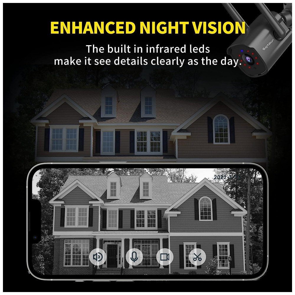 Câmera de Segurança com Fio 2.4G WIFI 2K com Detecção de Movimento e Visão Noturna 4 UN Septekon Preta