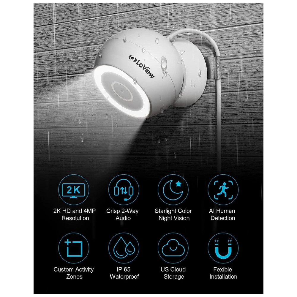 Câmera de Segurança com Fio Externa 2K Visão Noturna Áudio de 2 Vias 2.4G IP65 4UN LaView Branca