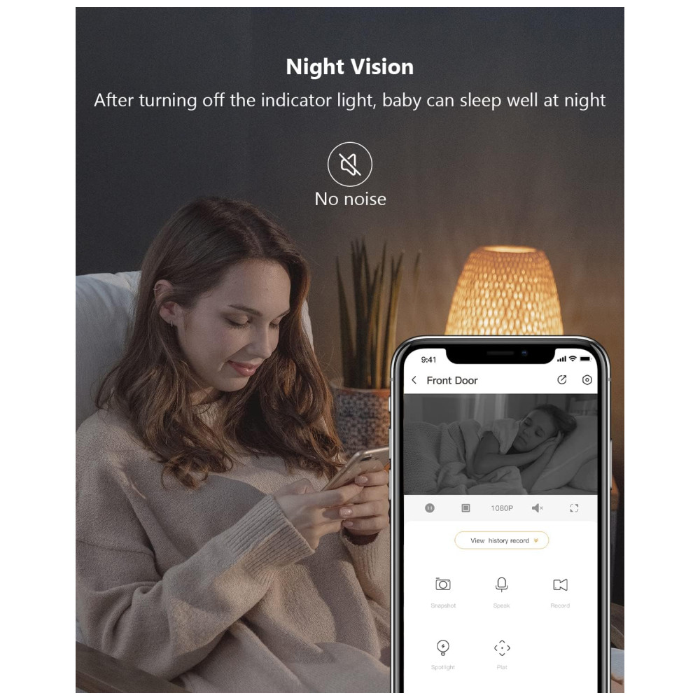 DETECÇÃO DE SOM ÁUDIO 2 VIAS Quando a câmera detecta um bebê chorando ou outros sons incomuns, um alerta instantâneo será enviado para o seu smartphone, mantendo você informado sobre o que está acontecendo em casa de qualquer lugar .