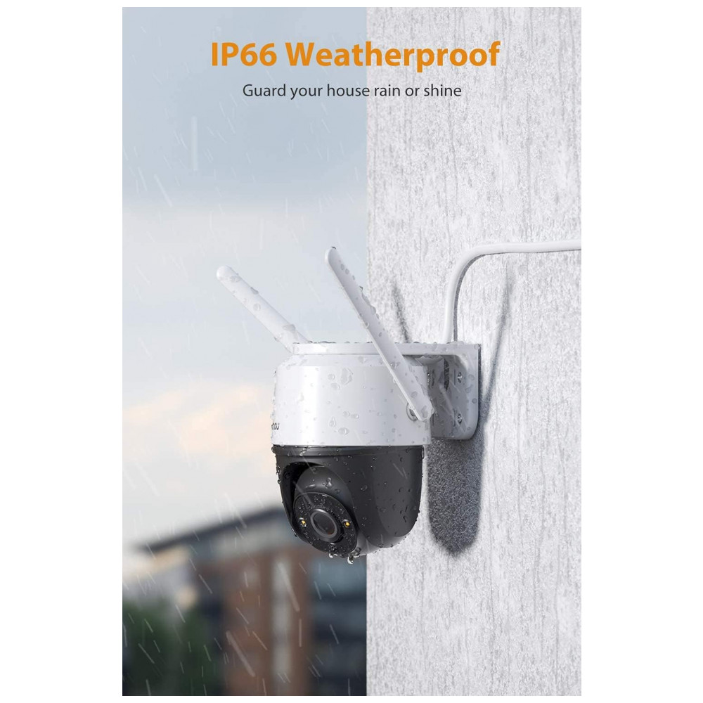RESISTENTE FORTE DO TEMPO O design à prova de intempéries e à prova de poeira IP66 permite que a câmera seja montada em qualquer condição climática externa para ficar de olho em sua casa, faça chuva ou faça sol, para esta câmera IP externa suporta temperaturas que variam de 30C a 60C. Sendo equipado com um plugue à prova dágua com um cabo de alimentação de 3 metros, pode ser sem complicações ao ar livre