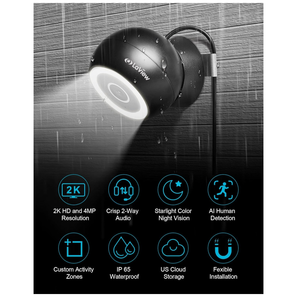 Câmera de Segurança Externa com Fio 2K Visão Noturna Áudio de 2 Vias IP65 4UN LaView Preta