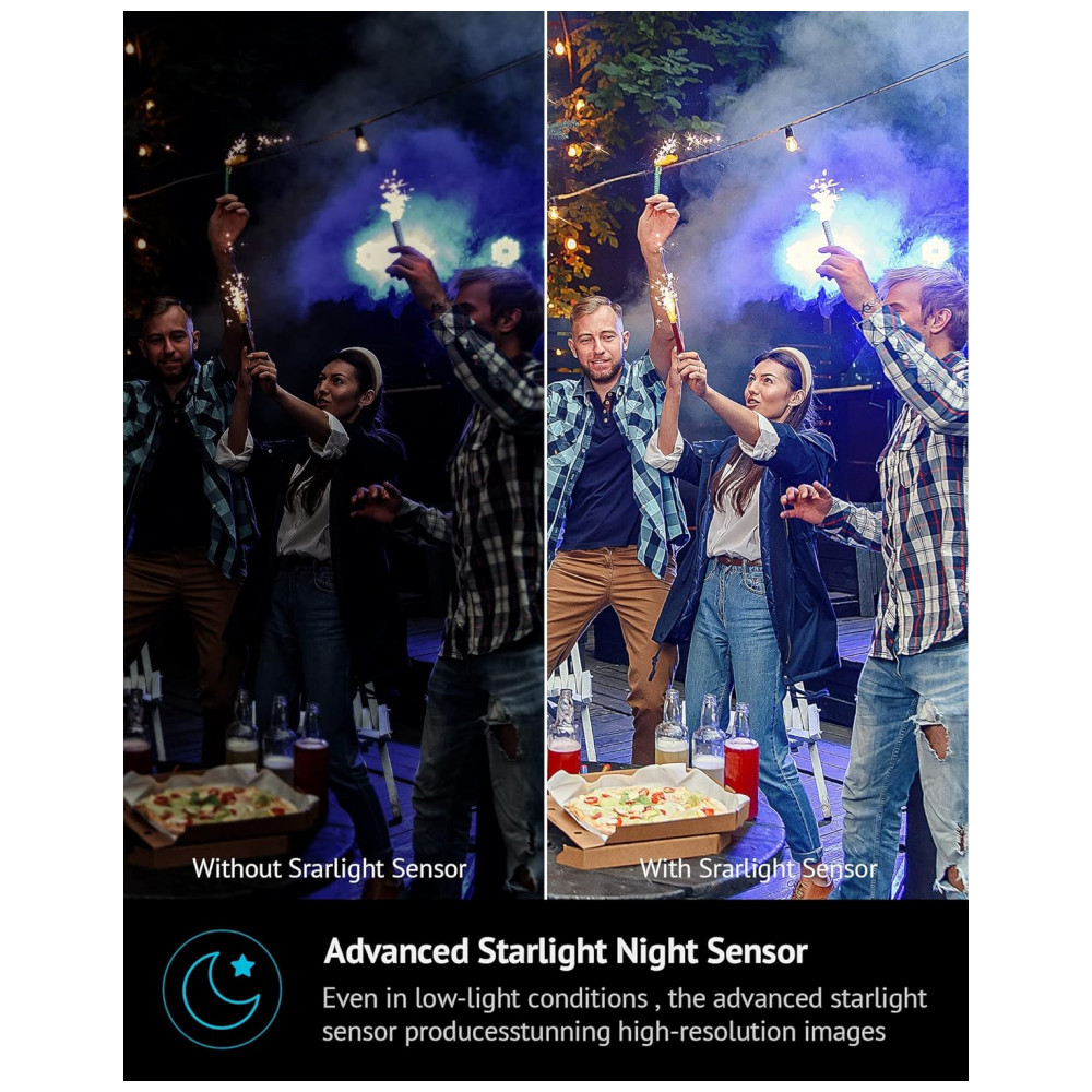 Visão noturna em cores 2K HD e Starlight resolução 4MP 2K 24, 7 A gravação de câmeras de segurança ao ar livre traz a visão ultra clara e momentos detalhados em tempo real, gravações ou imagens ao vivo o tempo todo. O poderoso sensor de luz das estrelas embutido que pode fornecer uma visão noturna colorida, 40x mais escura que as câmeras de vídeo tradicionais e a nova abertura f , 1.4 captura 2,5x mais luz, permitindo lhe uma visão de alta qualidade, mesmo à noite