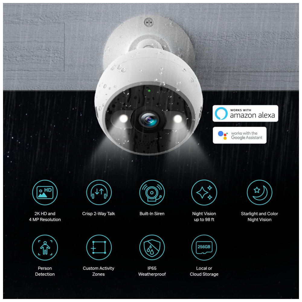 IP65 e 2K HD Implante sua câmera externa com um IP65 para seu nome à prova de intempéries. O vídeo 2K de 4 MP cristalino captura todos os detalhes do que a casa de sua casa, veja todos os objetos que estão disponíveis, reconheça todos os itens que passam, nenhum detalhe importante será perdido. Tipo de controlador Assistente do Google Alexa.