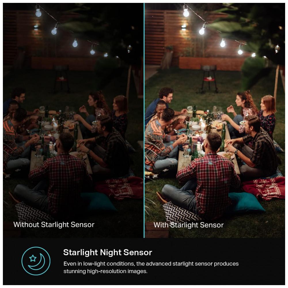Sensor Starlight e Visão Noturna Com o Sensor Starlight, como imagina em condições de pouca, uma vez que aparentas e outras resoluções. Determine se é um animal distante e distante de um arbusto ou quem é a figura sombria do outro lado da rua. Holofotes integrados duplos para visão noturna colorida, até 98 pés.