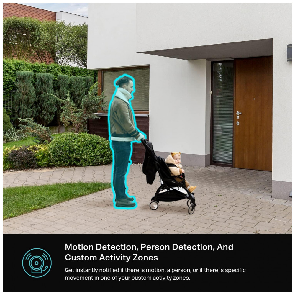 Detecção e notificação receber notas importantes instantâneas de graças aos algoritmos com tecnologia de IA. Se você tiver um movimento ou uma pessoa detectada no campo de visão da câmera de segurança, você será notificado assim como esse parceiro. Chega de se perdoar quando ou se pacote foi entregue.