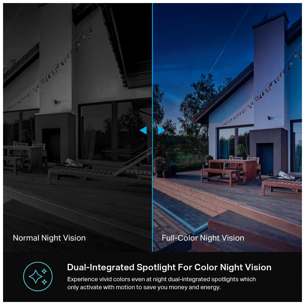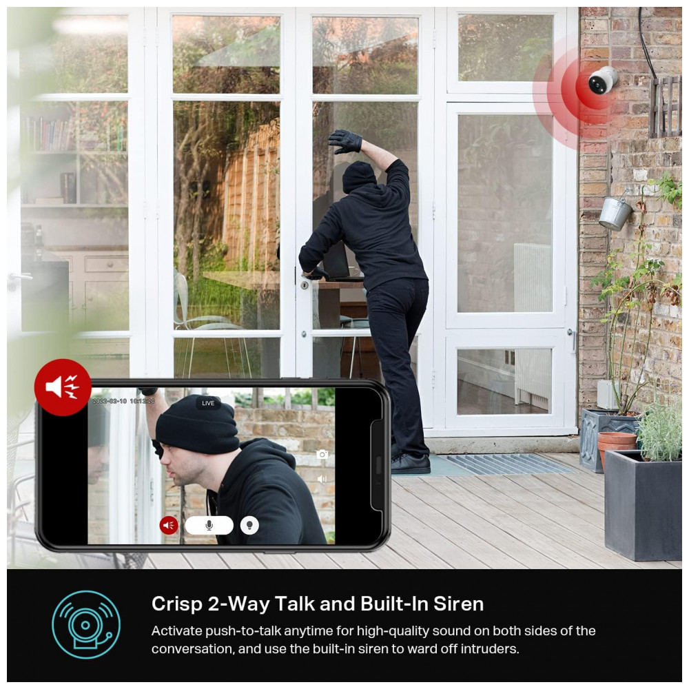Áudio bidirecional com sirene integrada Com microfone e alto falantes de alta qualidade, uma qualidade de conversação bidirecional é melor do que nunca. Ative o push to talk um momento de qualificação por meio do aplicativo Kasa. Além disso, evite intrusos com uma sirene integrada para proteger sua casa de visitantes indesejados