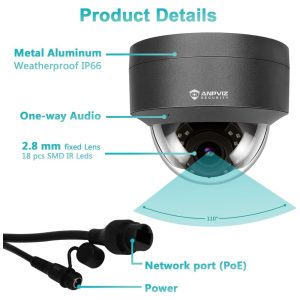 Câmera de Segurança Externa IP PoE 5MP com Microfone e Visão Noturna Anpviz Cinza