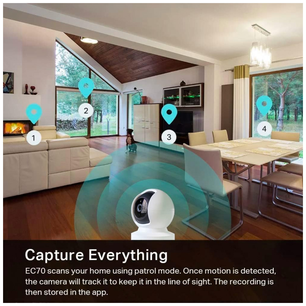 A câmera de segurança EC70 Pan, Tilt é a câmera ideal para monitorar sua casa. Você pode verificar seus entes queridos e bebês peludos sempre que não estiver lá com recursos de pan, tilt para ver toda a sala. Seja uma câmera para animais de estimação, monitor de bebê ou câmera de segurança, o EC70 atenderá às suas necessidades.