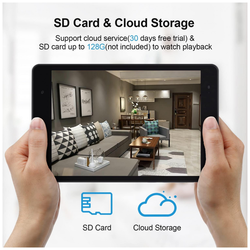 ZENAMENTO DUPLA Esta câmera de segurança interna suporta zenamento em nuvem e slot micro SD embutido, zena seus dados e gravações localmente com um cartão SD extra não incluído ou na nuvem.