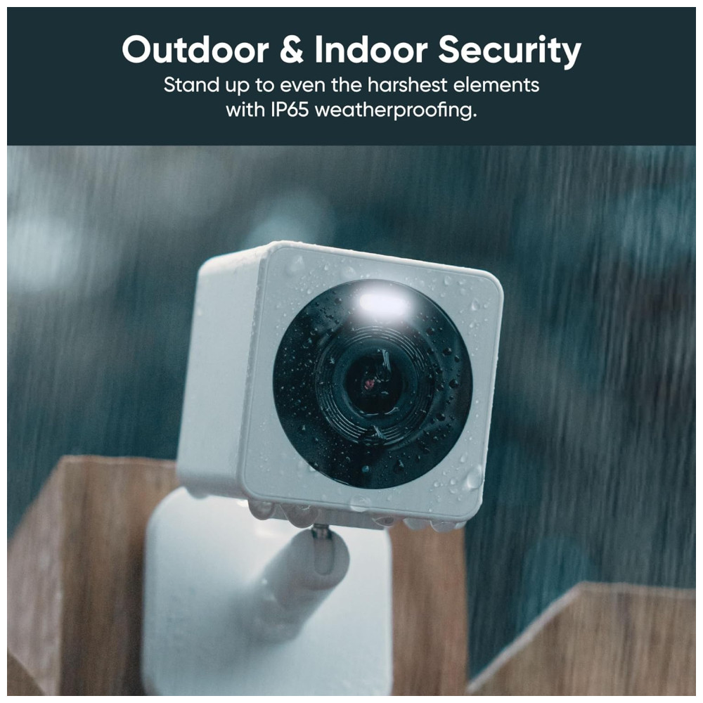 Indoor , Outdoor Wyze Cam OG é uma câmera de segurança com fio com classificação IP65, para que você possa instalá la com confiança no exterior na chuva ou no interior da sala infantil . Adaptador de energia externa Wyze vendido separadamente necessário para uso externo.