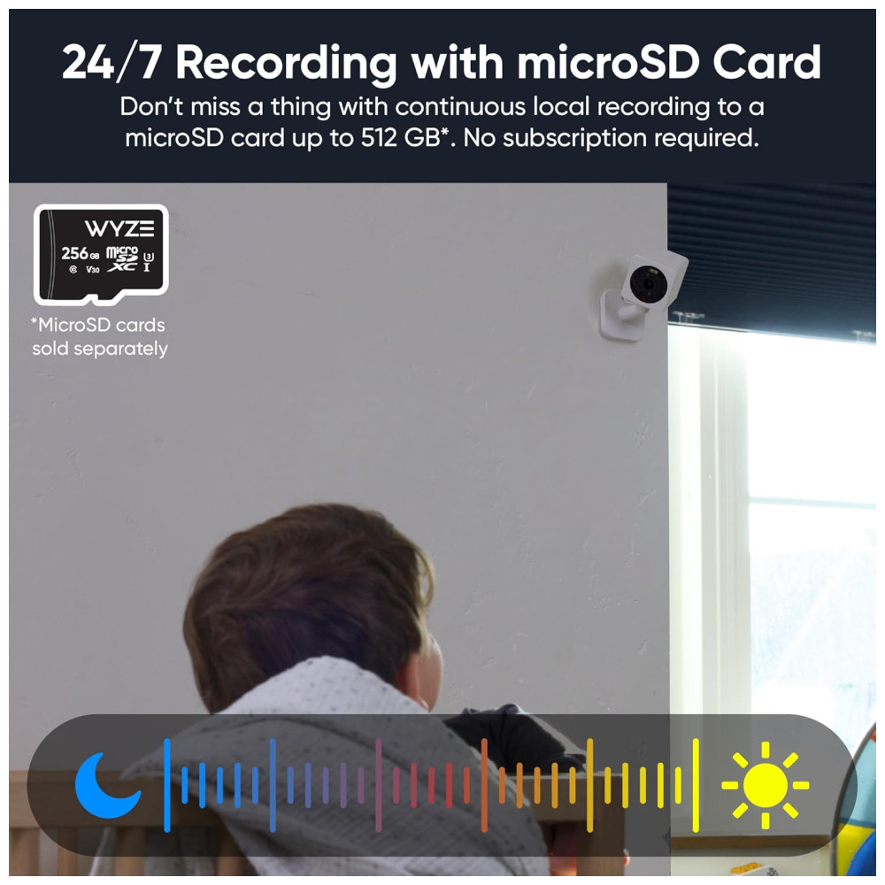 Duas maneiras de gravar vídeos obtenha gravação segura na nuvem, bem como pessoa, pacote, animal de estimação, e detecção de veículo com Cam Plus assinatura necessária ou insira um cartão microSD vendido separadamente para gravar vídeos localmente.
