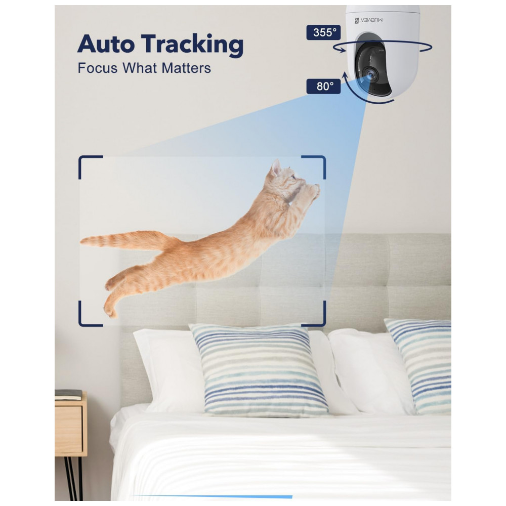 Mubview câmeras de segurança internas para casa rastreiam automaticamente o movimento se detectar movimento. Quando o movimento é detectado, o aplicativo Mubview envia um alerta em tempo real para o seu telefone, para que você não perca nenhum movimento essencial.