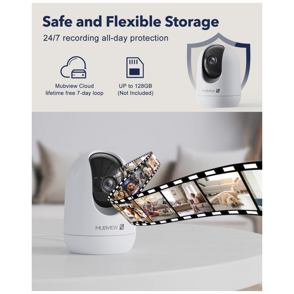 Aplicativo Mubview aprimorado e compra verdadeiramente livre de riscos Visualização ao vivo de quatro câmeras para animais de estimação com aplicativo de telefone simultaneamente no aplicativo. Todas as suas filmagens são mantidas privadas e seguras. Você pode optar por salvar vídeos em um cartão micro SD não incluído ou na nuvem, conforme necessário. Compartilhe sua câmera wi fi com sua família para vê la juntos. O LIFETIME SERVICE garante que isso se tornará rapidamente sua compra favorita sem riscos.