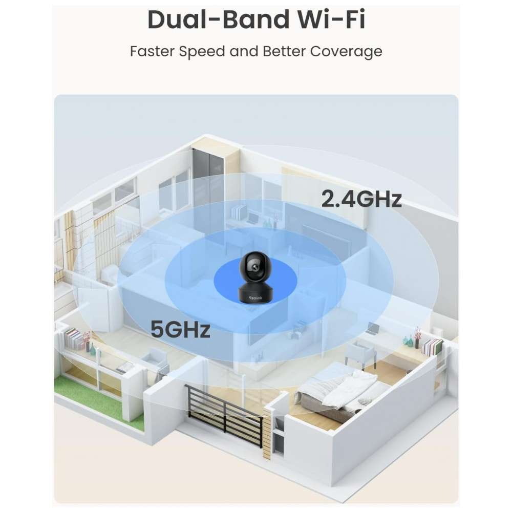 Esta câmera WiFi interna pode funcionar em WiFi de 2,4 GHz e 5 GHz, oferecendo mais opções para melhor atender às suas necessidades.