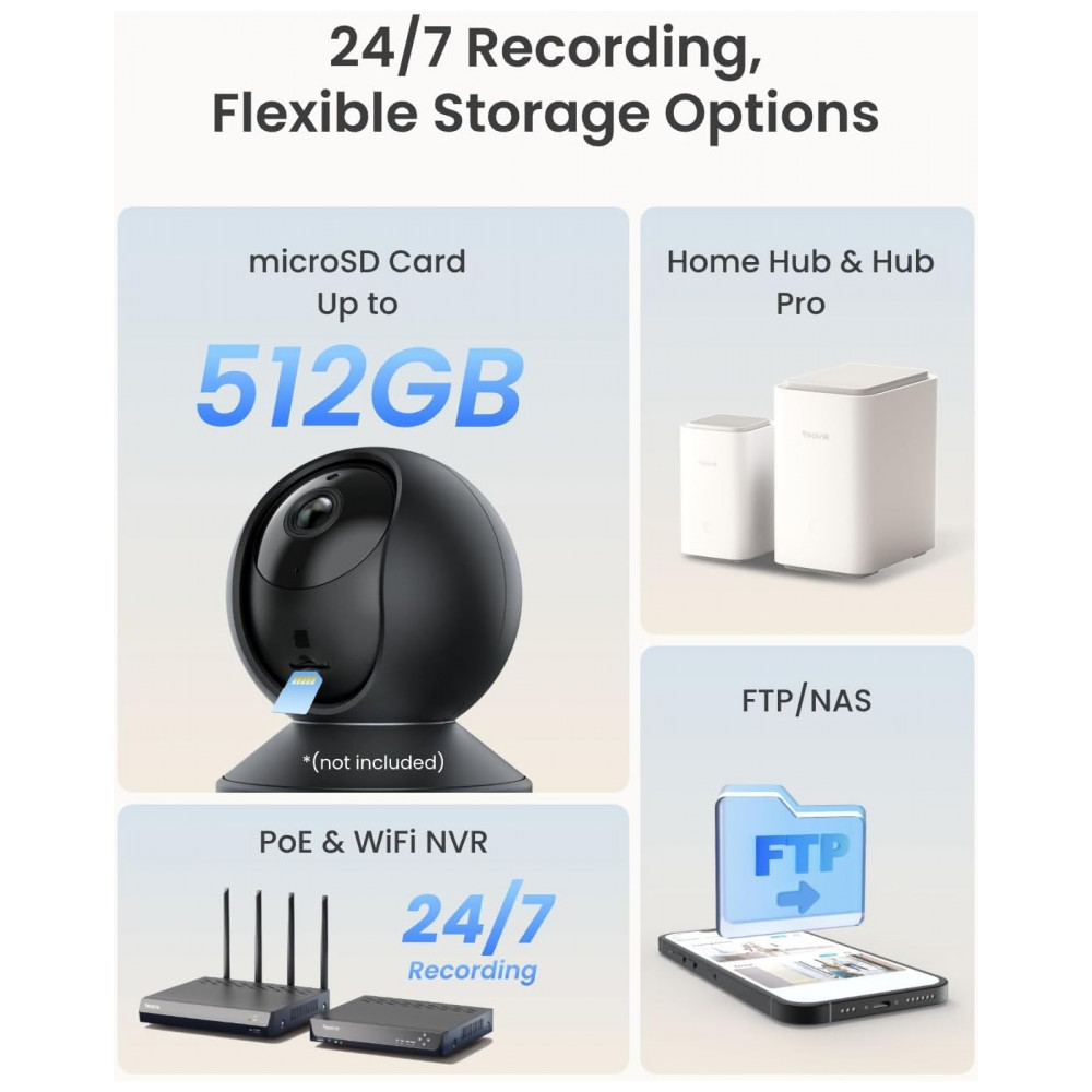 Os vídeos podem ser salvos no cartão microSD até 256 GB, não incluídos e Reolink NVR, e reproduzidos a qualquer momento