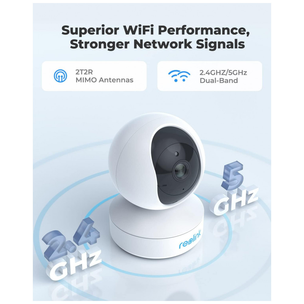 Esta câmera WiFi interna pode funcionar em WiFi de 2,4 GHz e 5 GHz, oferecendo mais opções para melhor atender às suas necessidades.