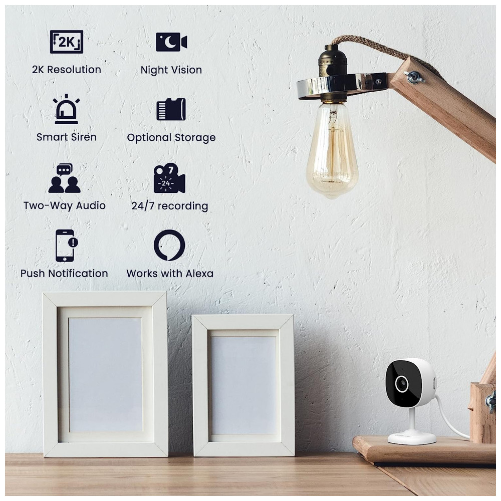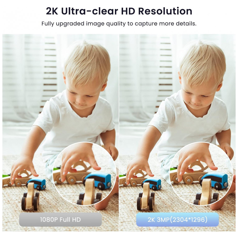 Resolução Ultra 2K e Visão noturna avançada A câmera wifi Galayou com resolução HD 2K fornece uma qualidade de imagem clara e vívida e captura mais detalhes em sua casa em qualquer lugar durante o dia e a noite usando o zoom digital 6X. Esta câmera de segurança interna tem uma visão noturna aprimorada com distância efetiva de até 10 metros. Esta câmera interna para segurança doméstica suporta apenas WiFi de 2,4 GHz. 5GHz não é suportado