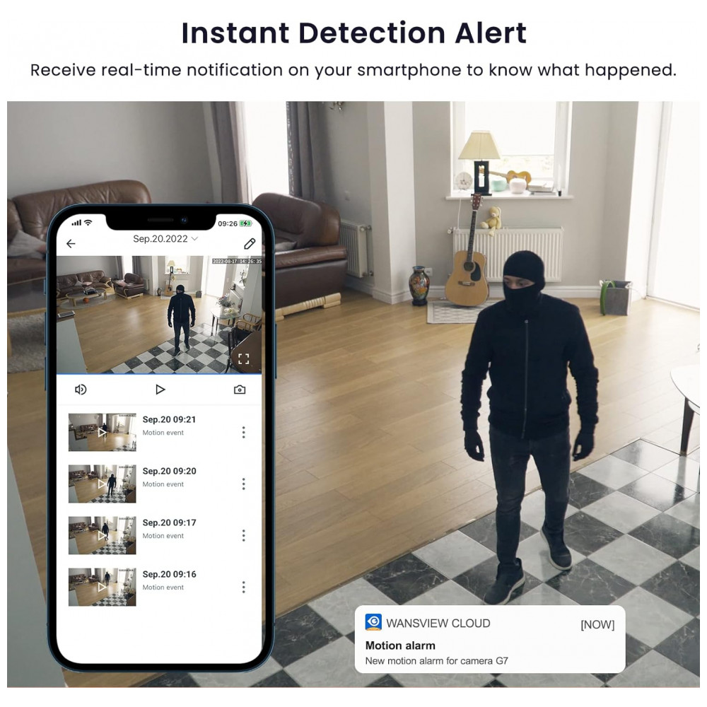 Monitoramento remoto e áudio de duas vias O microfone e o alto falante embutidos permitem manter contato com seu bebê, animal de estimação,família controlando remotamente o aplicativo Wansview Cloud quando você estiver fora ou ocupado. Esta câmera WiFi para vigilância em casa também pode assustar o invasor inesperado para manter sua propriedade segura com o recurso de áudio.