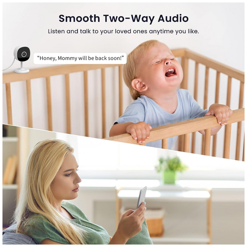 24, 7 Alerta de movimento em tempo real e sirene inteligente A câmera do bebê suporta detecção de movimento e alerta de pressão para monitorar seu bebê , animal de estimação , filho mais velho. Quando seu bebê sai dos berços ou seu animal de estimação está arranhando o sofá, o monitor da câmera Galayou enviará uma mensagem de alerta no telefone para que você saiba.