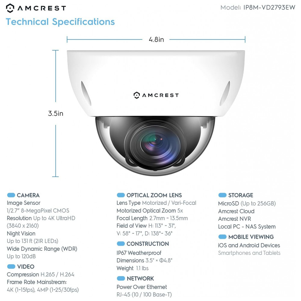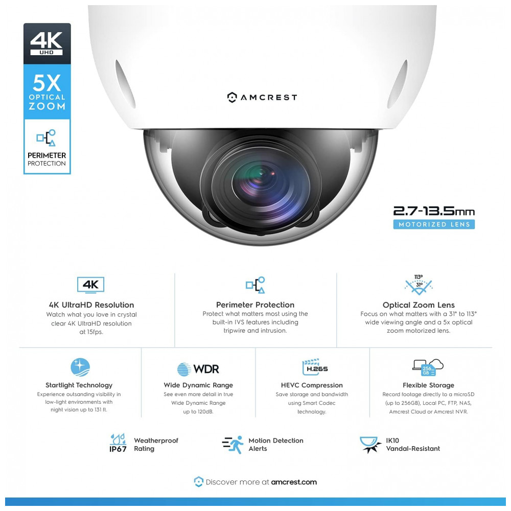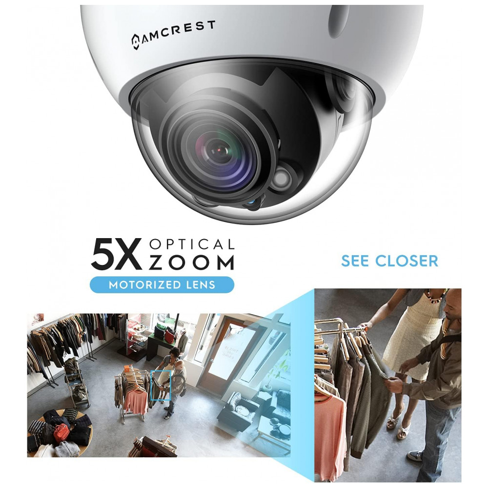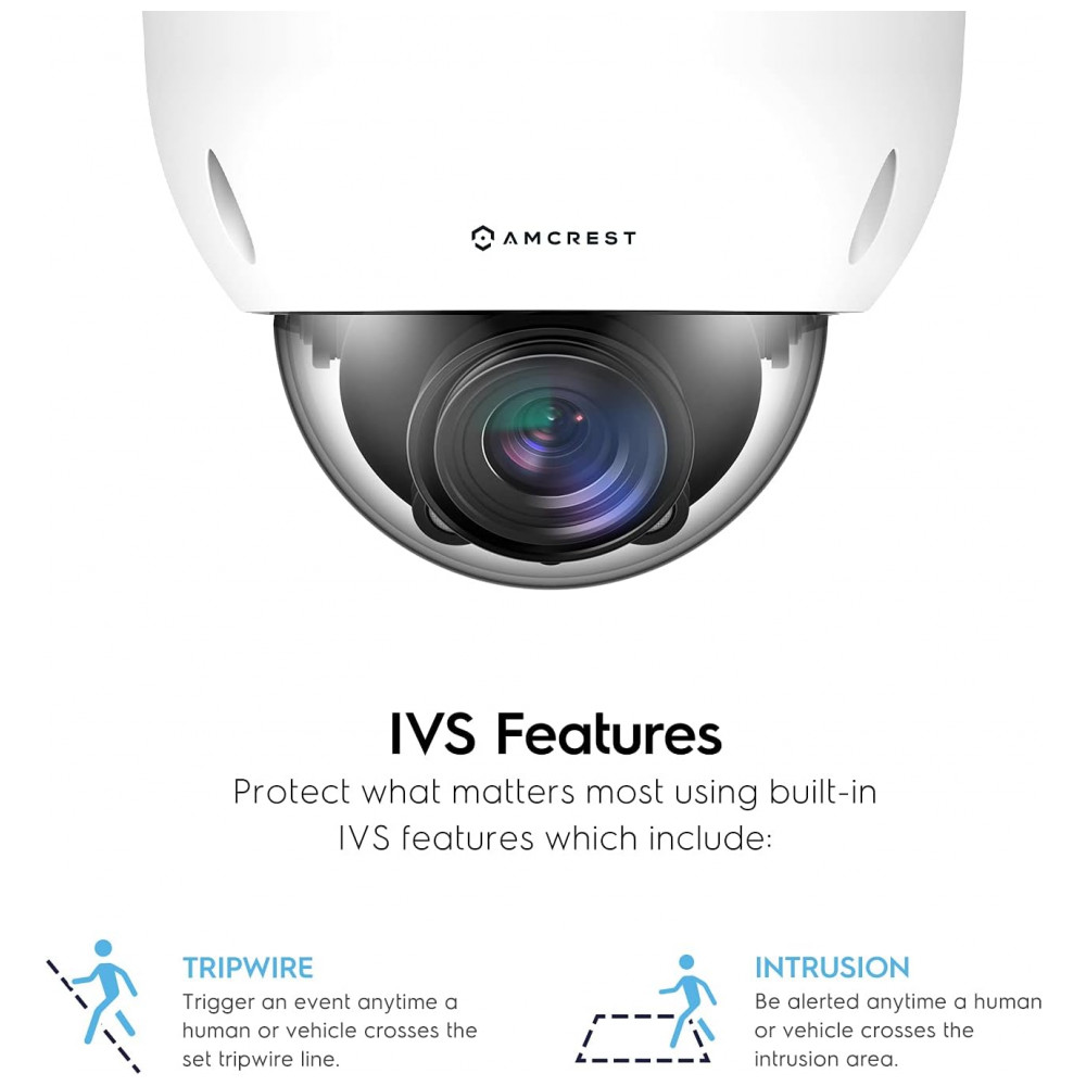 SEGURANÇA MAIS INTELIGENTE Esta câmera com zoom óptico possui fio de gotejamento e intrusão IVS para proteção de perímetro. Receba notificações de alerta de movimento e revise imagens através do seu smartphone da sua câmera PoE com o aplicativo Amcrest View. Esta câmera possui a mais recente tecnologia JavaScript que permite acessar a câmera em vários navegadores da web, incluindo Chrome, Firefox, Safari, etc.