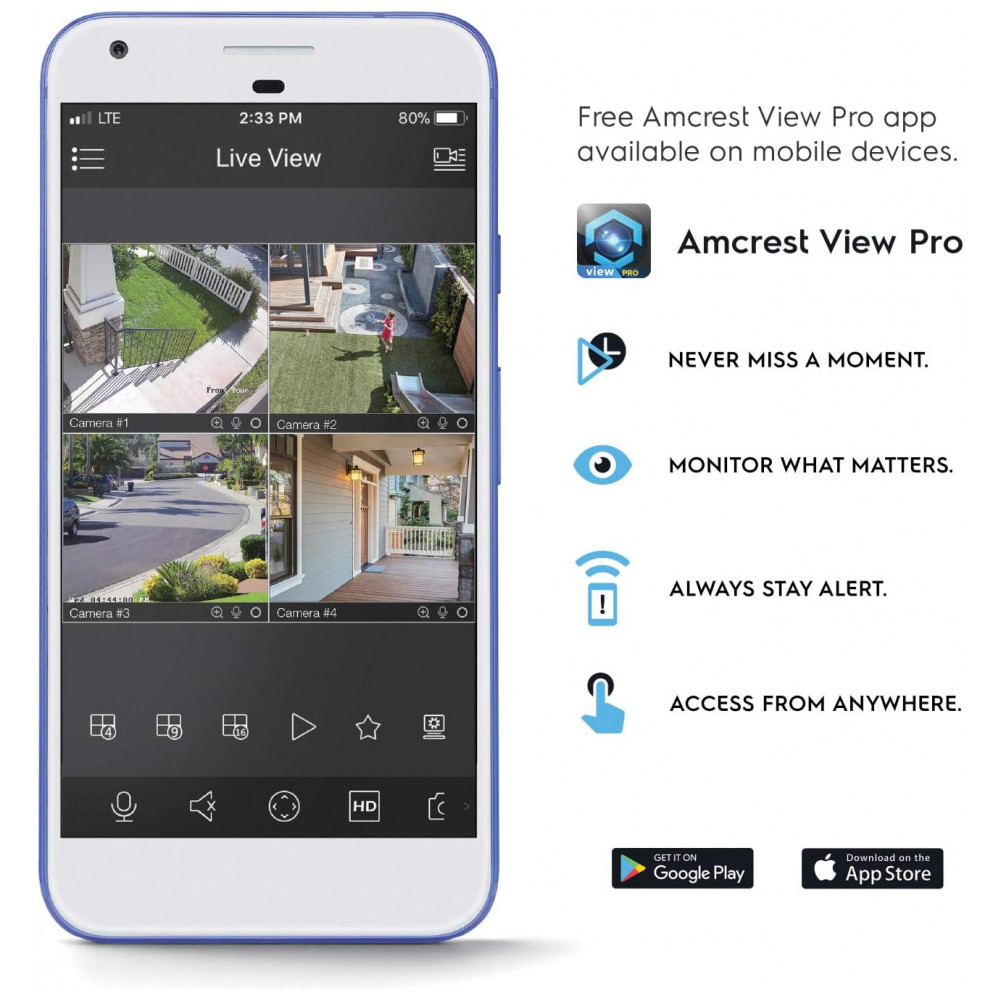 Encontre Solace na nuvem O Amcrest Cloud foi criado para garantir que você não perca nada, não importa onde esteja. Com uma interface intuitiva, você pode transmitir ao vivo suas imagens, o que permite reproduzi las com base em suas preferências. É necessário um injetor ou interruptor de PoE não incluído